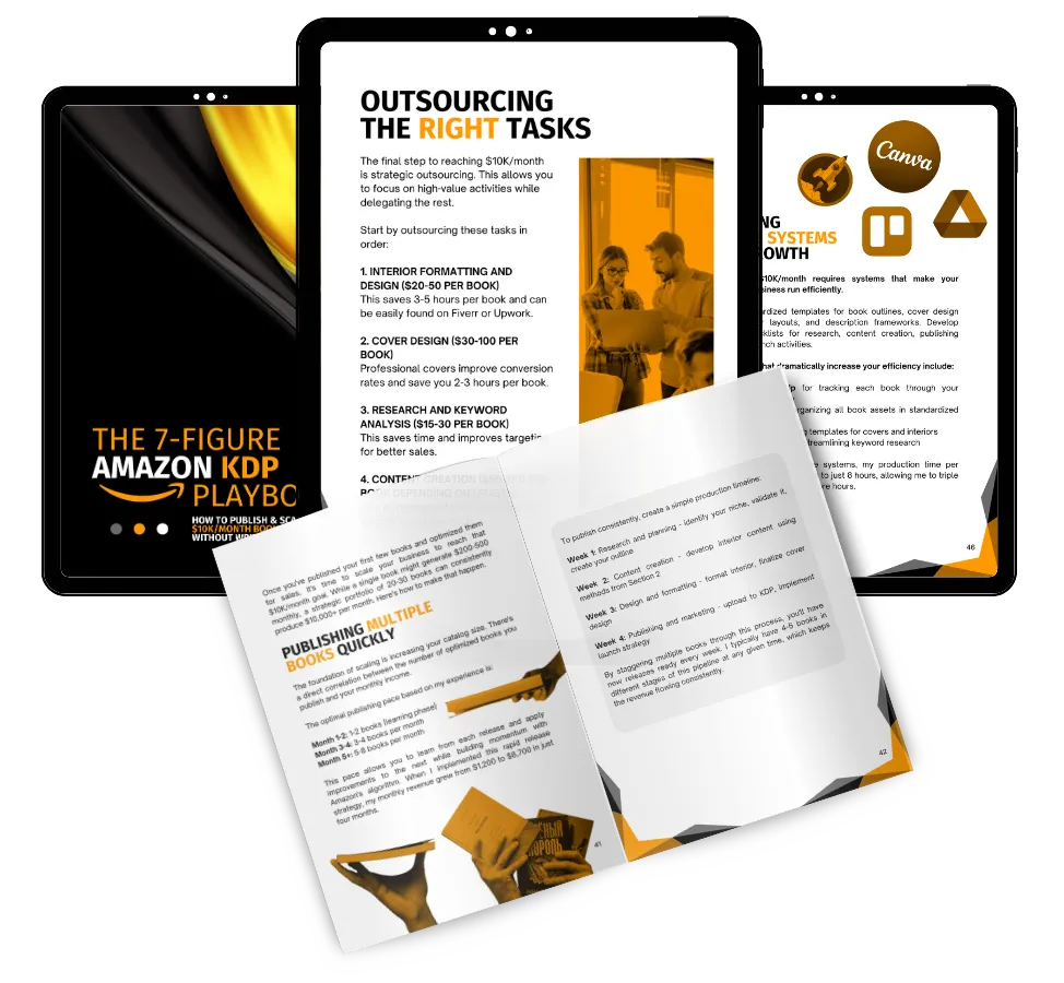 This playbook is perfect for side hustlers looking for legitimate passive income that doesn't consume all their free time, entrepreneurs who want a scalable business model with low overhead, and anyone who wants to leverage Amazon's platform but doesn't want to deal with physical products. It's especially suited for those who value time freedom but don't have writing skills or enjoy writing.